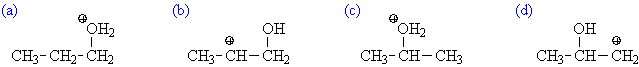The mechanism of the reaction of propene with H3O+ will proceed through which of the following intermediates?