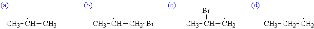 The reaction of propene with HBr in the presence of ROOR (peroxide) proceeds through which of the following intermediates?